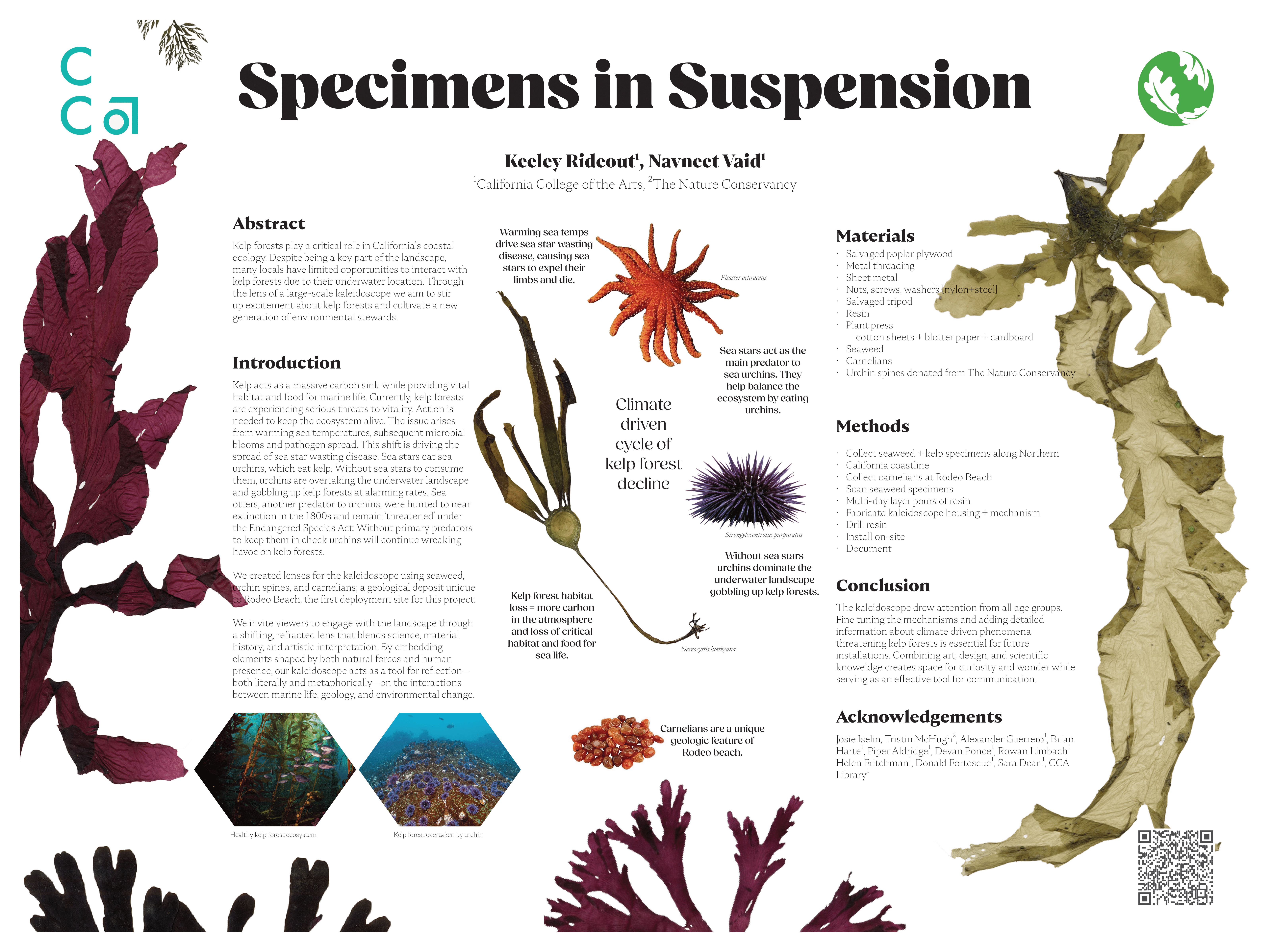 Our process involved coastal foraging, studio pressing, and resin casting using a three-layer pour technique. The resulting lenses, presented at Rodeo Beach, invite viewers to slow down, look closer, and consider the quiet urgency of kelp forest collapse.